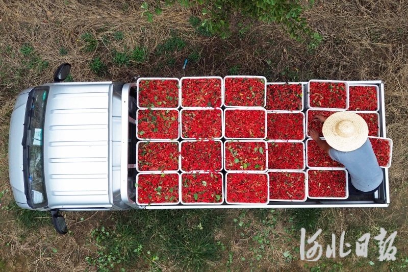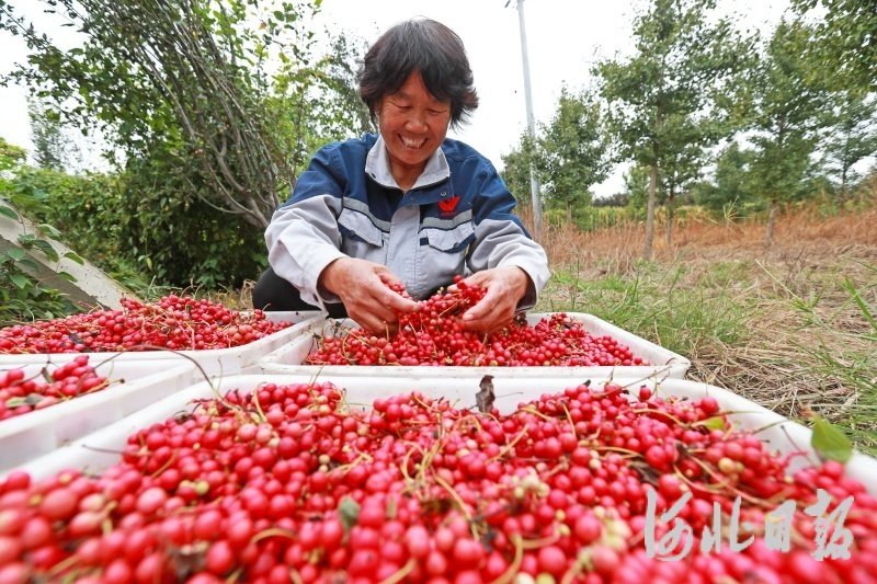 近日,河北省玉田县亮甲店镇孔五官屯村中药材种植基地的五味子喜获丰收,农民们利用晴好天气加紧采摘、精选、装运,到处都是一派繁忙景象。