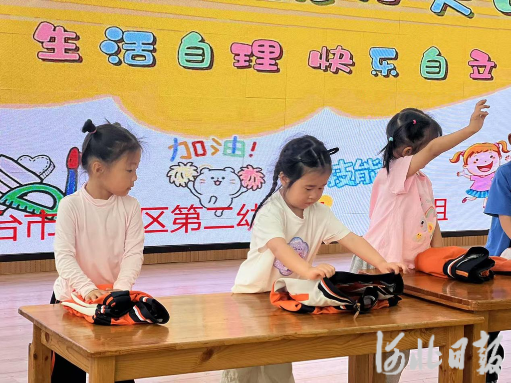 河北日报客户端讯(范晓洁)10月11日,邢台市襄都区第二幼儿园举办以“生活自理,快乐自立”为主题的幼儿生活能力大赛,促进幼儿培养良好的生活习惯,提高自我服务能力,树立“自己的事情自己做”的自主意识,