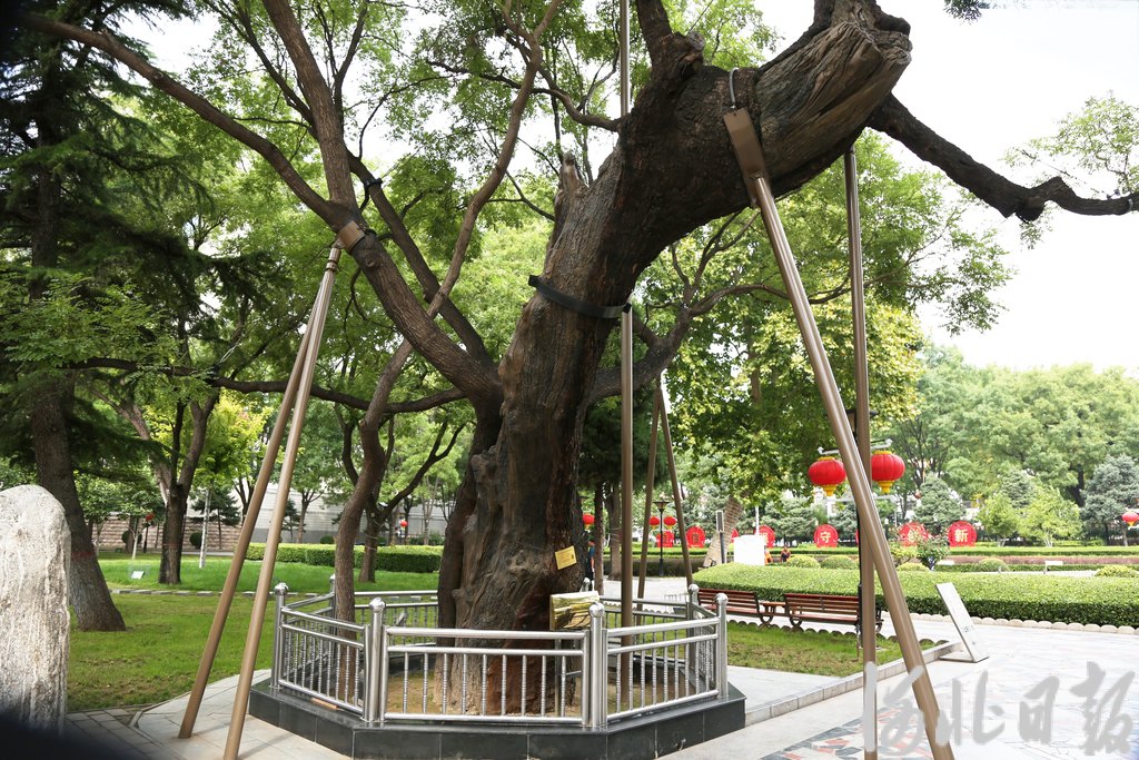 几乎每天,赵爱华都会到这两株古槐下,细细查看一番。53岁的他,是正定县城市管理综合行政执法局市政园林服务中心园林站副站长,负责古树的保护工作。“古树也需要‘体检’,就像人一样。树体稳固性咋样、长势好不好、影响根系生长的土壤质量如何,这些都要时时留意。”他说。