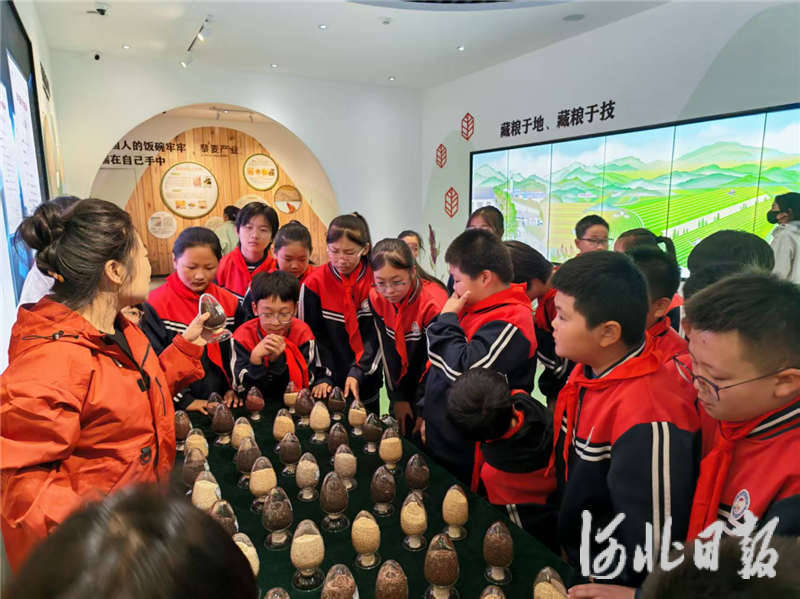 进入县藜麦馆,队员们便被丰富的展品与生动的科普内容深深吸引。在讲解员的讲解中,大家对藜麦有了全新的科学认知,认识到“沽源藜麦蛋白质含量高,一斤藜麦的蛋白质相当于四斤优质牛奶”。随后,同学们积极参与互动问答,在轻松愉快的氛围中进一步加深了对藜麦营养价值与种植知识的理解,也对家乡特色农业产业产生了自豪感。