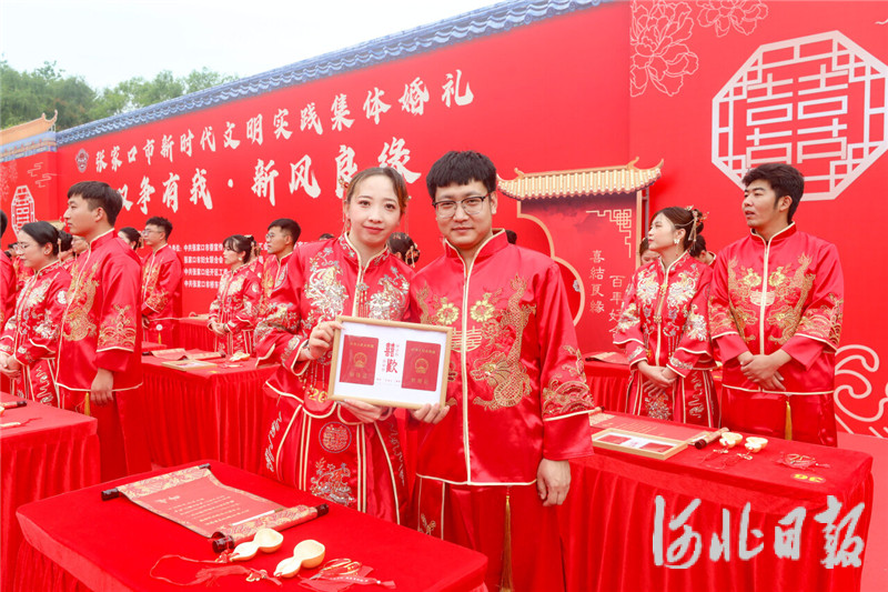 8月29日,为倡导文明婚俗新风尚,“双争有我·新风良缘”张家口市新时代文明实践集体婚礼在市民广场举行。武殿森摄