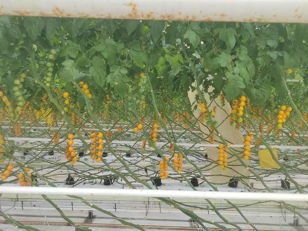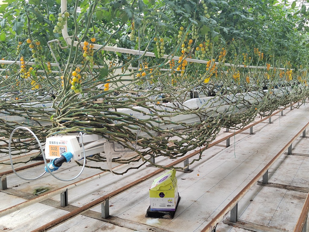 宏福现代农业产业园采用智能水肥一体化控制技术,实现温度、湿度、光照、二氧化碳等参数智能化管控。通过熊蜂授粉、生物防治、无土栽培等绿色技术,比传统日光温室增产10倍多。园区产出的番茄颗粒大小均匀、形态饱满、酸甜度俱佳,全年连续不断运往全国50余个城市的3600余家商超,成为北方冷凉地区的智慧农业标杆。