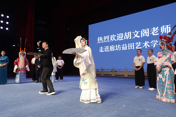 10月11日,“强基工程”——戏曲名家志愿服务小分队走进廊坊益田艺术学校,胡文阁对师生进行帮扶指导。陈童摄