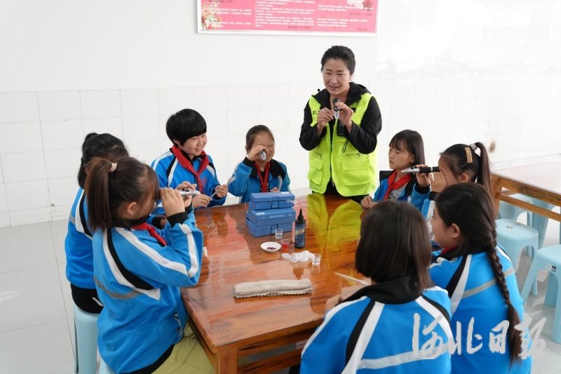 图为工作人员正在带领学生们做科学小实验、制作玫瑰花钥匙扣。张泽慧摄