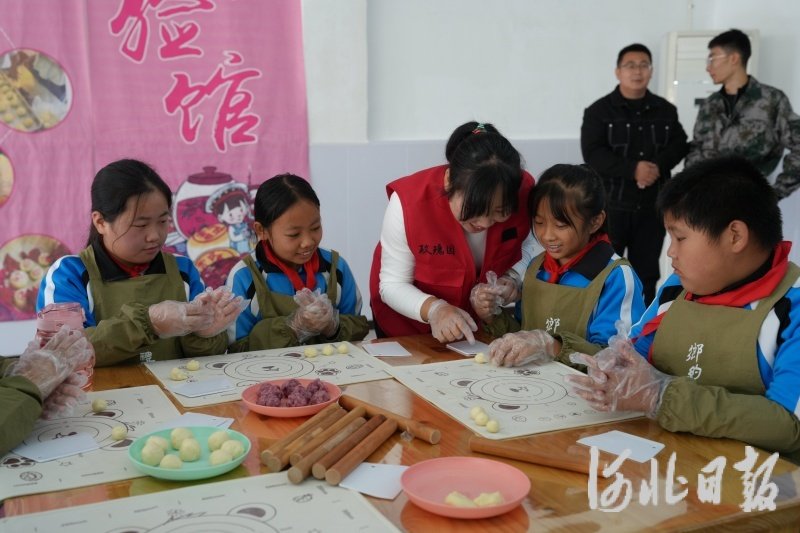 图为工作人员正在指导学生们制作玫瑰鲜花饼。张泽慧摄