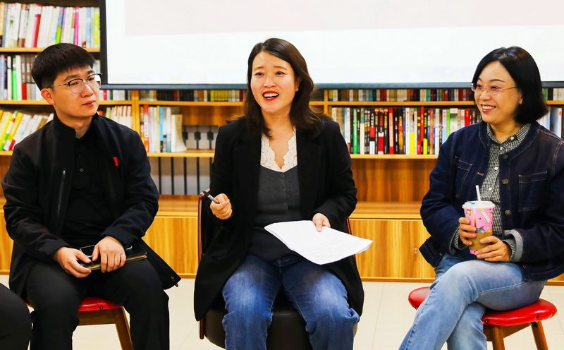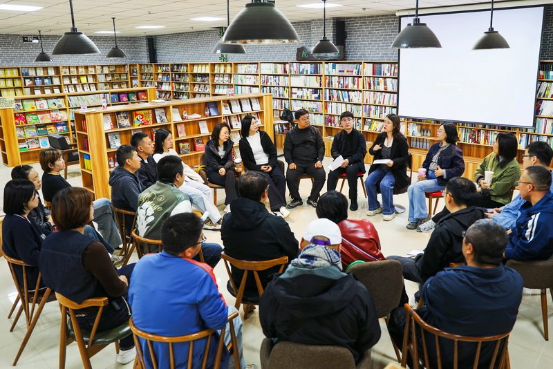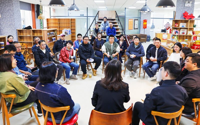 10月11日,张家口市桥东区红旗楼街道工作人员在交流基层工作经验。
