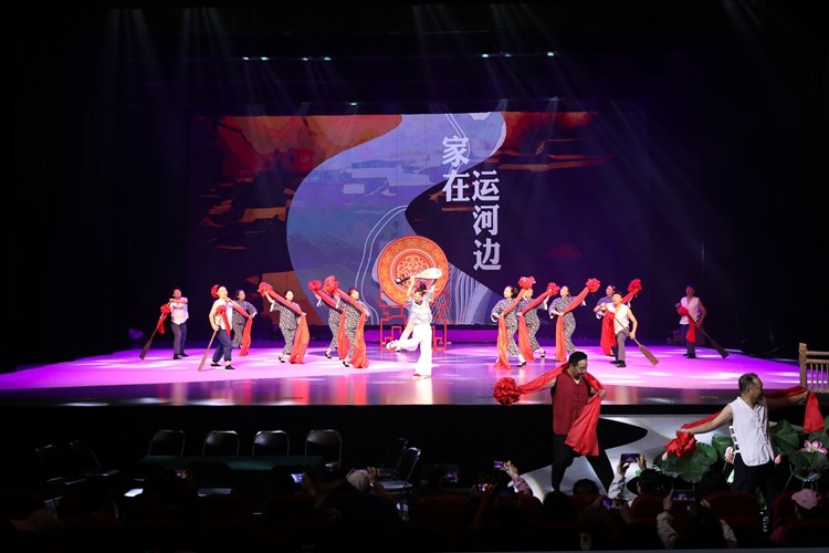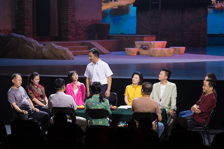 随着豪迈的“运河号子”声响起,演出正式拉开帷幕。《家在运河边》以北京市通州区台湖镇唐大庄村为创作原型,讲述了返乡青年丁名扬与村民共同开发民宿经济的感人故事,真实再现了北京城市副中心推进乡村振兴的创新实践。