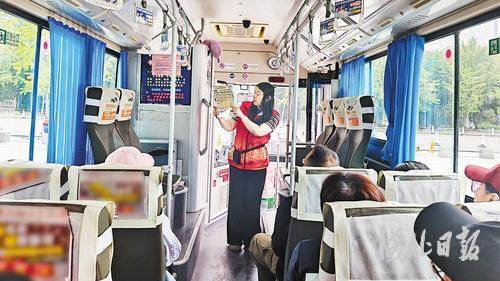 10月4日,志愿者在旅游专线直通车上为游客介绍沿途景观。邯郸市委社会工作部供图