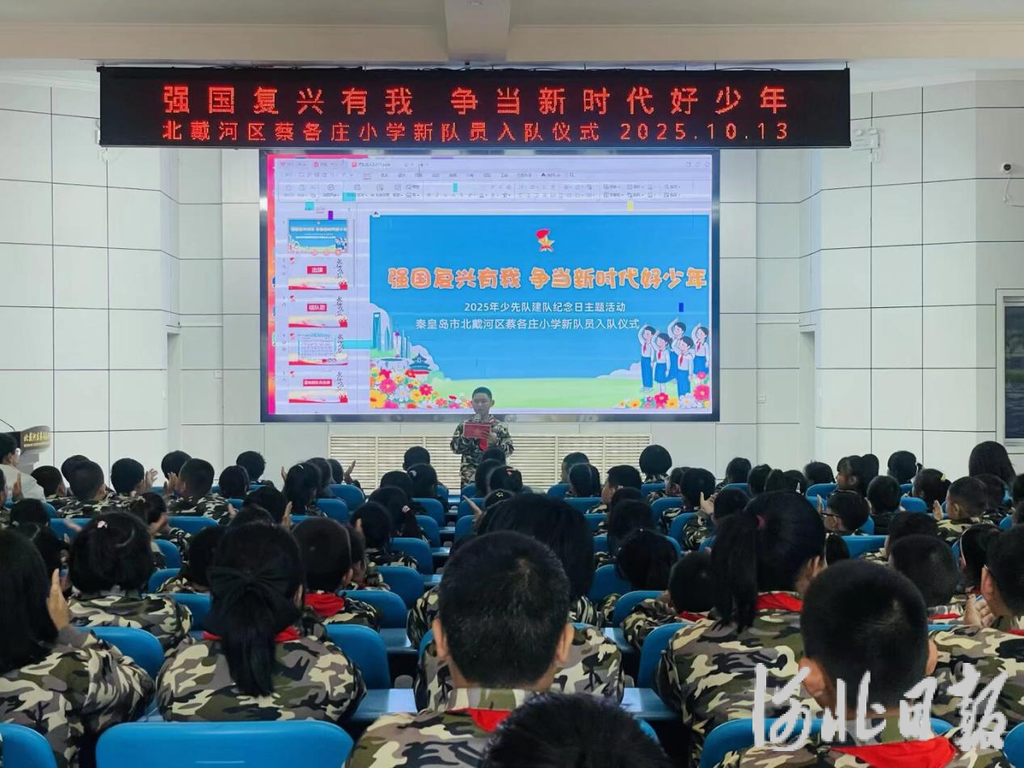 河北日报客户端讯(贺丹)10月13日是中国少年先锋队建队纪念日。当日,秦皇岛市北戴河区蔡各庄小学以“强国复兴有我 争当新时代好少年”为主题,举行庄严的新队员入队仪式。47名新队员在鲜红队旗下正式加入中国少年先锋队,实现爱国主义与国防教育深度融合。