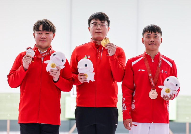 10月15日,河北选手牛琪松(中)在领奖台上。