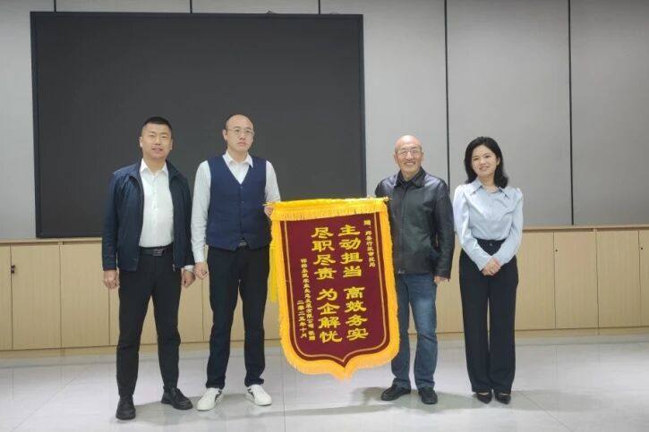 10月13日上午,邯郸永甄农业生态发展有限公司负责人将一面印有“审批高效 服务暖心”的锦旗送到邱县行政审批局,对该局提供的高效帮办服务和延时服务表达诚挚谢意。