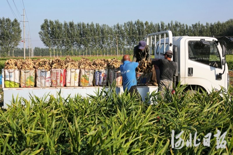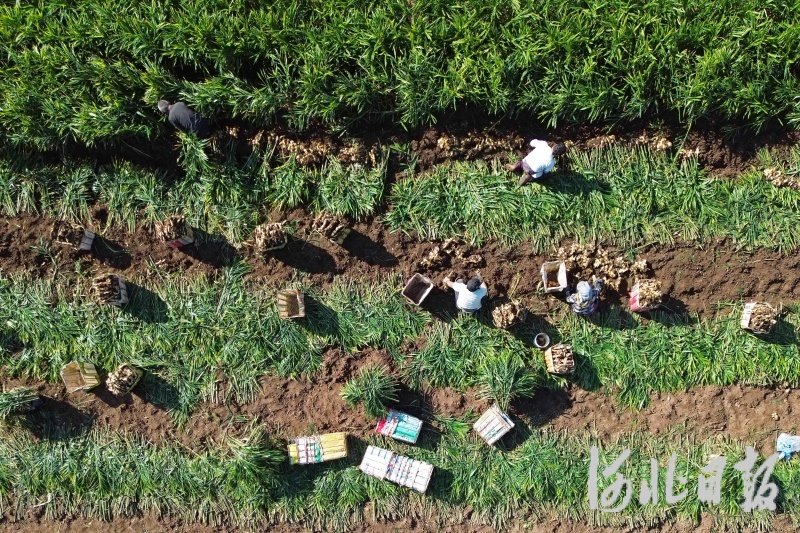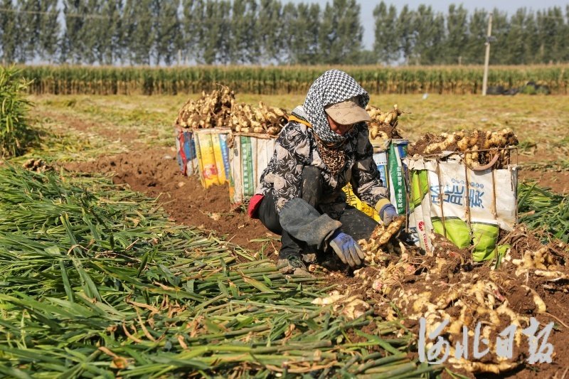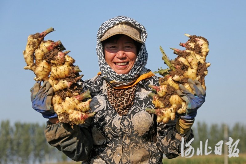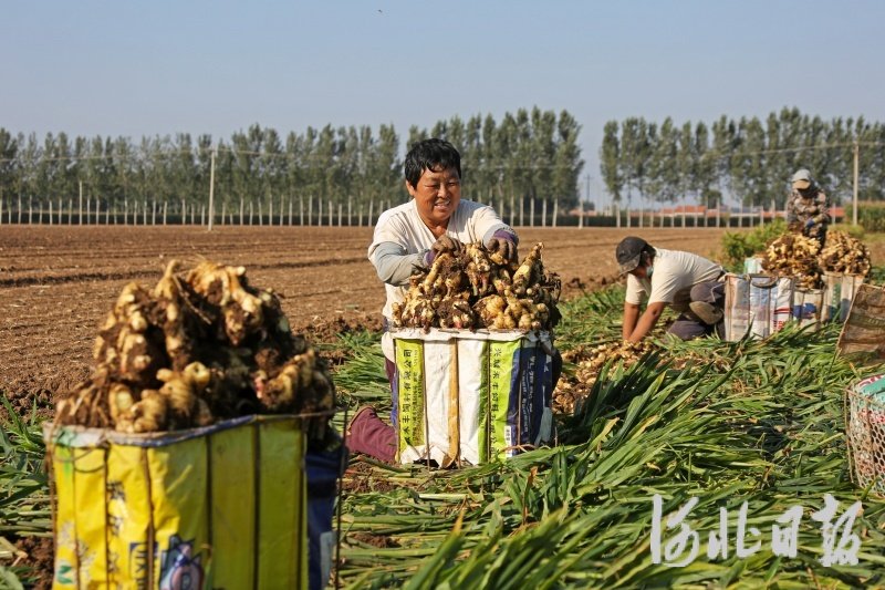 图为玉田县窝洛沽镇东贾庄村的生姜喜获丰收。