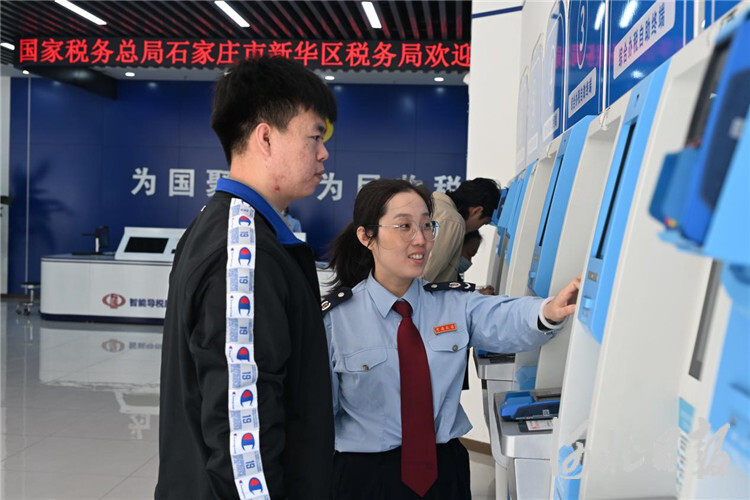 10月14日,在石家庄市新华区税务局办税服务厅,工作人员指导企业纳税人办理业务。