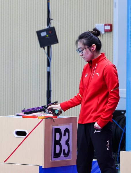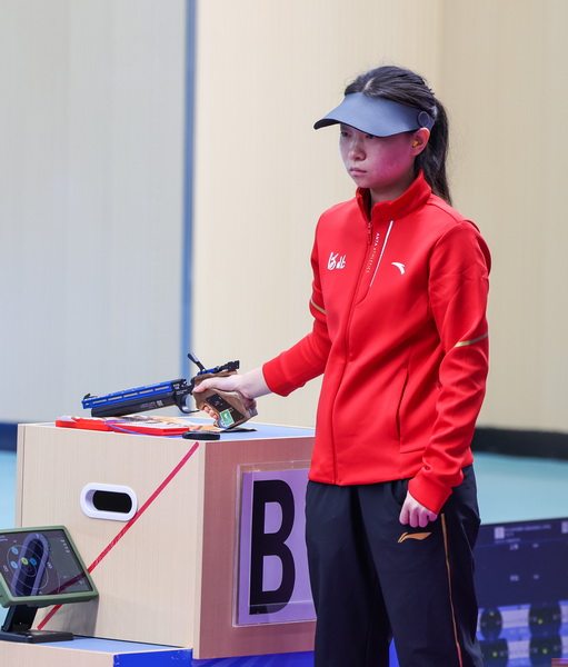 10月17日,河北队王一荻在女子10米气手枪团体决赛中。