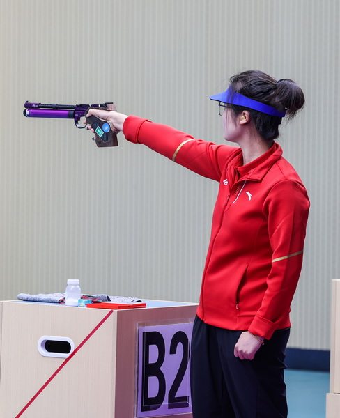 10月17日,河北队祖鹏雯在女子10米气手枪团体决赛中。