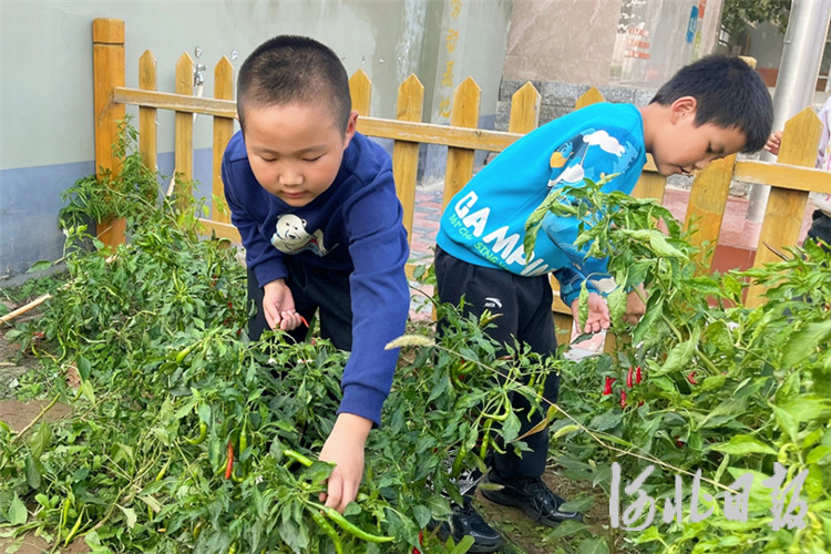 10月15日,上京学校组织低年级学生来到学校劳动实践基地,开展辣椒采摘活动。
