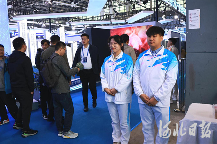 河北师范大学学生李思源是展馆讲解岗的一名志愿者。“虽然每天要走两万多步,但能近距离接触最新的科技成果,为嘉宾介绍前沿技术,累并快乐着。”他曾多次参与石家庄马拉松等大型活动志愿服务,这次更深刻体会到肩上的责任:“我们不仅是服务者,更是石家庄的‘青春名片’。”