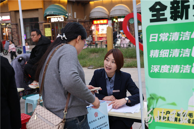 河北日报客户端讯(吴梦莹)10月14日,石家庄市桥西区留营街道凤桥街社区联合石家庄灵活就业市场,在幸福生活广场举办招聘活动。活动通过红色联盟就业服务体系,组织辖区内外15家企业提供80余个就业岗位。
