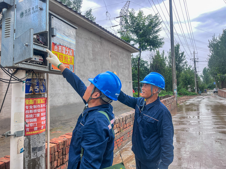 国网永清供电公司工作人员雨后第一时间对线路进行巡检。
