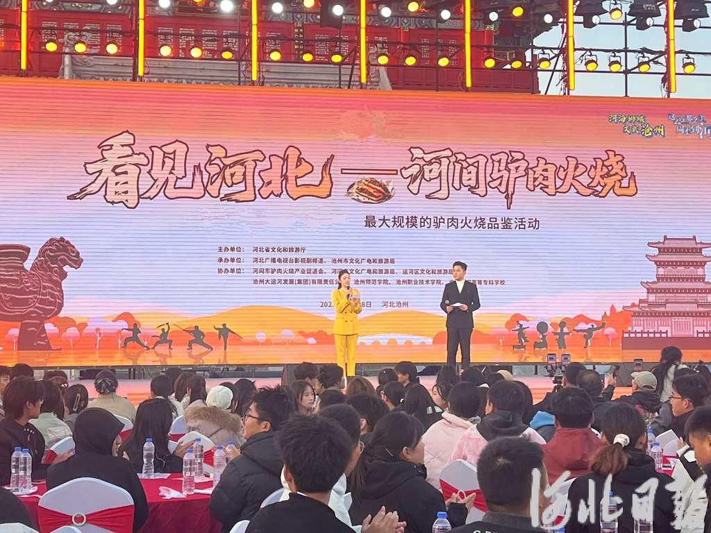 本次活动由河北省文化和旅游厅主办,沧州市文化广电和旅游局等单位承办,吸引了8家知名河间驴肉火烧品牌商参与。活动现场,300名在沧高校的学生共同品鉴了经典口味的河间驴肉火烧,并积极互动,分享品尝感受。