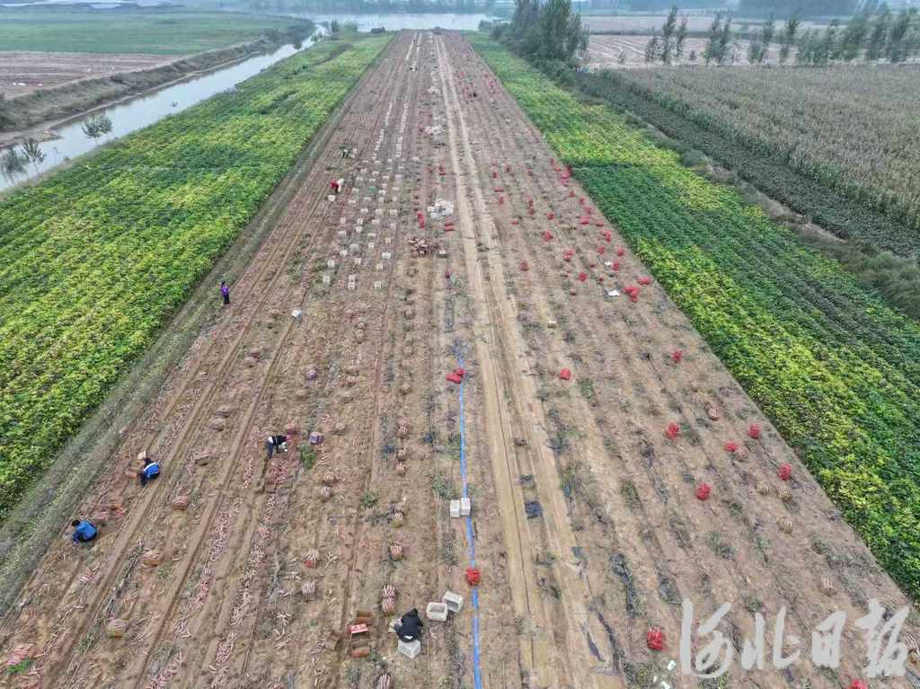河北日报客户端讯(王海涛)10月16日,河北省广宗县七斗店村的500亩红薯田迎来丰收季,田间地头到处是农民忙碌采收的身影,一派热闹的丰收景象。