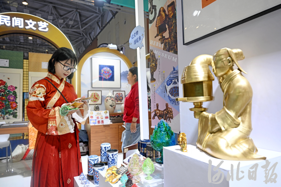 10月16日,观展嘉宾在第十届中国国际版权博览会河北展厅参观河北博物院文创展品。河北日报记者张昊摄