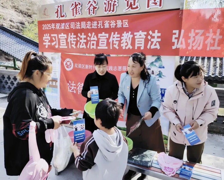 河北日报客户端讯(颉昕然)近日,双滦区司法局以“学习宣传法治宣传教育法,弘扬社会主义法治精神”为主题,在双塔山孔雀谷景区开展“普法宣传进景区”活动,打造“法治+旅游”融合新模式,深入学习宣传《中华人民共和国法治宣传教育法》。