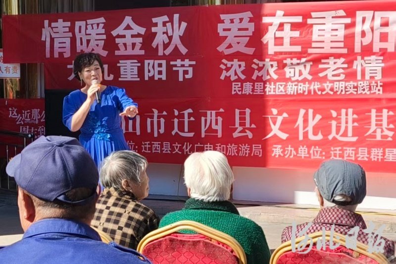 河北日报客户端讯(赵志鹏、陈征、孙丽颖)在重阳节来临之际,为传承弘扬尊老、敬老、爱老的传统美德,河北省迁西县栗乡街道民康里社区联合县文化广电和旅游局、县群星歌舞艺术团、县瑞迎养老服务中心,共同举办“九九重阳节·浓浓敬老情”主题文艺演出,为社区老年人送上有温度有欢乐的节日祝福。
