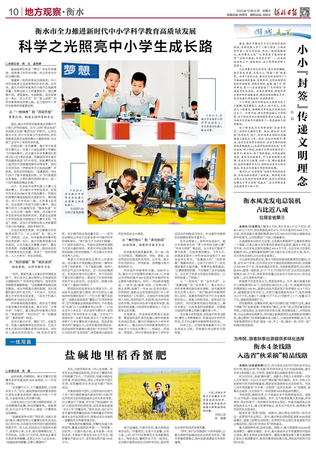 走在衡水的校园里,实验室中的专注眼神、赛场上的默契配合、科普活动中的欢声笑语,无不印证着科学教育带来的改变。