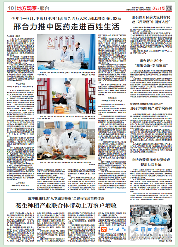 如今,像姚胜春一样在家门口享受便捷中医药服务,已成为多数邢台市民的日常诊疗选择。今年1—9月,该市中医月平均门诊量7.5万人次,同比增长46.03%。