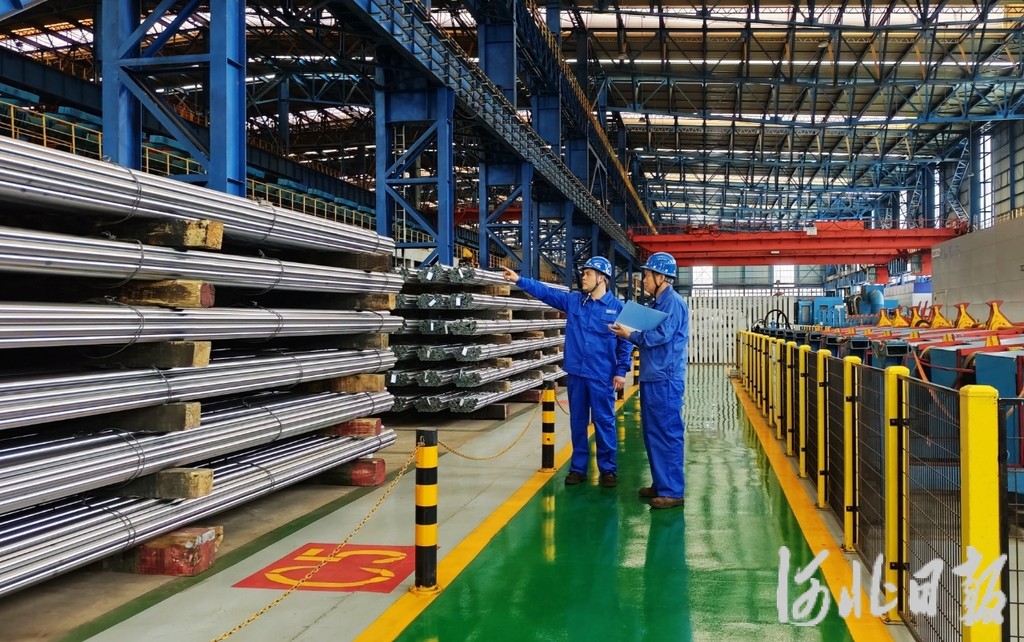 10月11日,在石钢公司高端银亮线车间,工作人员正在检查下线的产品。河北日报记者刘冉摄