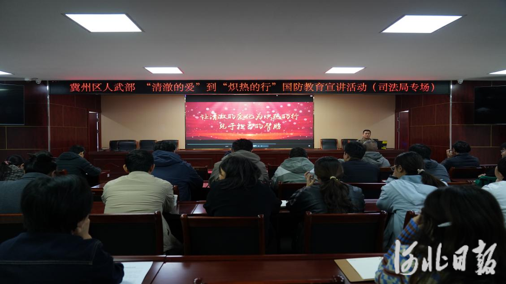 河北日报客户端讯(孟宪峰、马涛)为进一步增强司法干警的国防意识,营造关心国防、热爱国防、支持国防的浓厚氛围,10月21日,衡水市冀州区人武部走进区司法局开展“清澈的爱”到“炽热的行”国防教育宣讲活动。