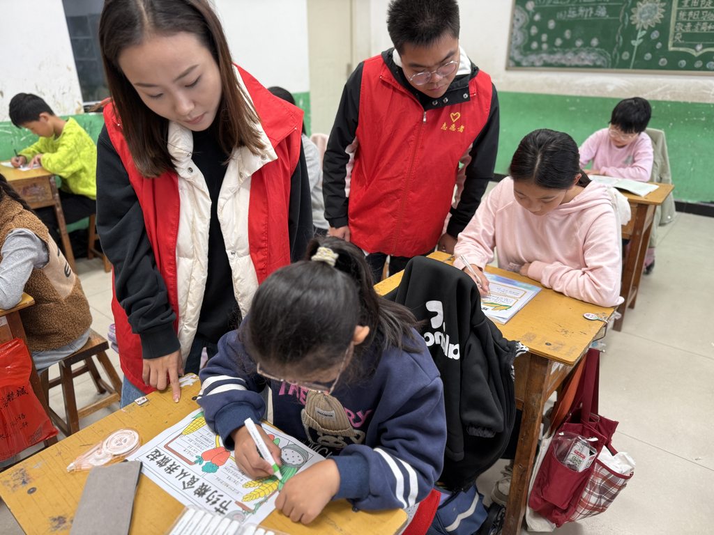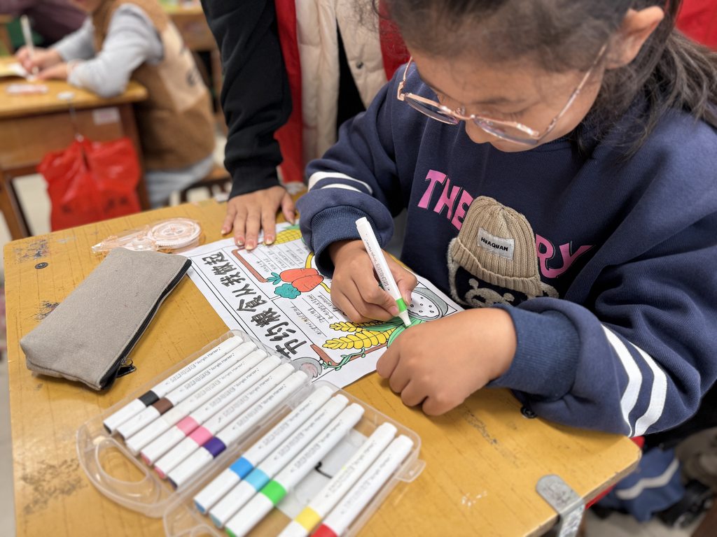 创作过程中,王集乡新时代文明实践所的党员志愿者们穿梭其间,耐心指导同学们构思内容、搭配色彩,同时结合全球粮食危机案例、我国粮食安全战略,为大家讲解“为何要节约粮食”“如何守护粮安”。一幅幅色彩鲜艳、内容丰富的手抄报,不仅是同学们艺术才华的展现,更成为粮食安全知识的“移动课堂”。