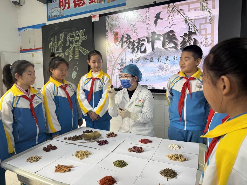 新乐市中医医院中药师为小学生讲解常见中药材。
