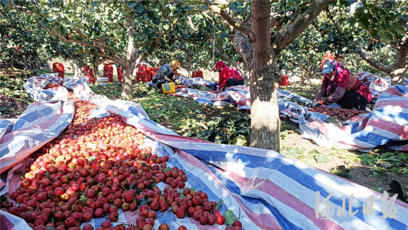 河北日报客户端讯(张晓磊、杨冬梅)金秋十月,走进秦皇岛市抚宁区茶棚乡大所三村山楂园,一串串饱满红润的山楂缀满枝头,工人们正忙着采摘、分拣、装箱,一派热闹繁忙的丰收景象。