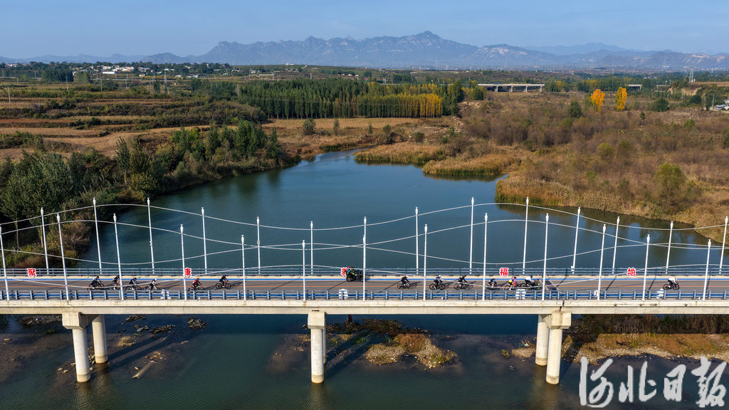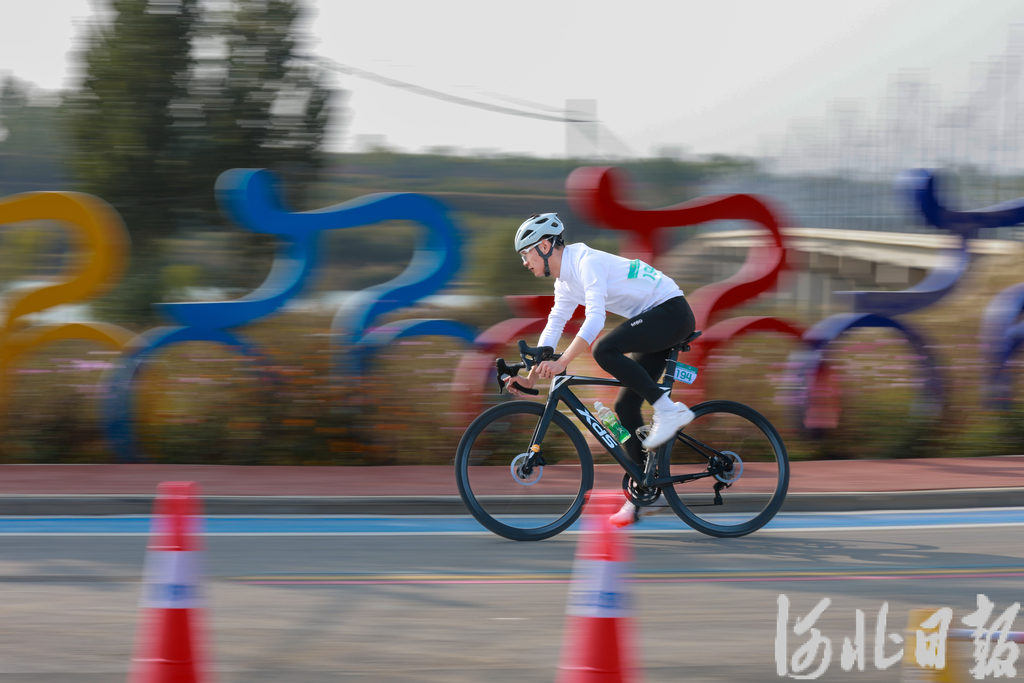 10月26日,2025华北环扁鹊湖自行车挑战赛在内丘县扁鹊湖畔开赛。刘继东摄