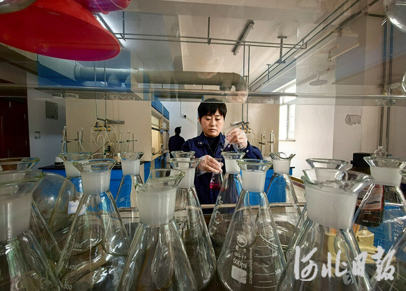 10月11日,在唐山金利海生物柴油股份有限公司的生物柴油综合检测实验室,工作人员在进行样品检测。河北日报记者 王育民摄