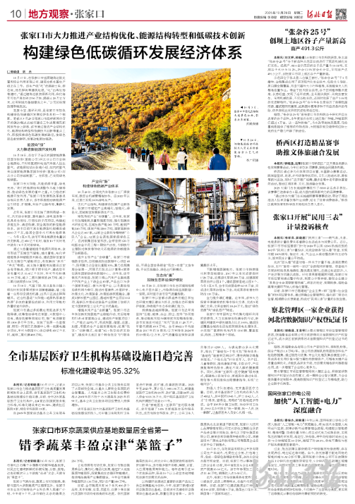 优化产业结构,构建绿色低碳产业新体系。张家口市锚定产业高端化、智能化、绿色化,因地制宜发展新质生产力。