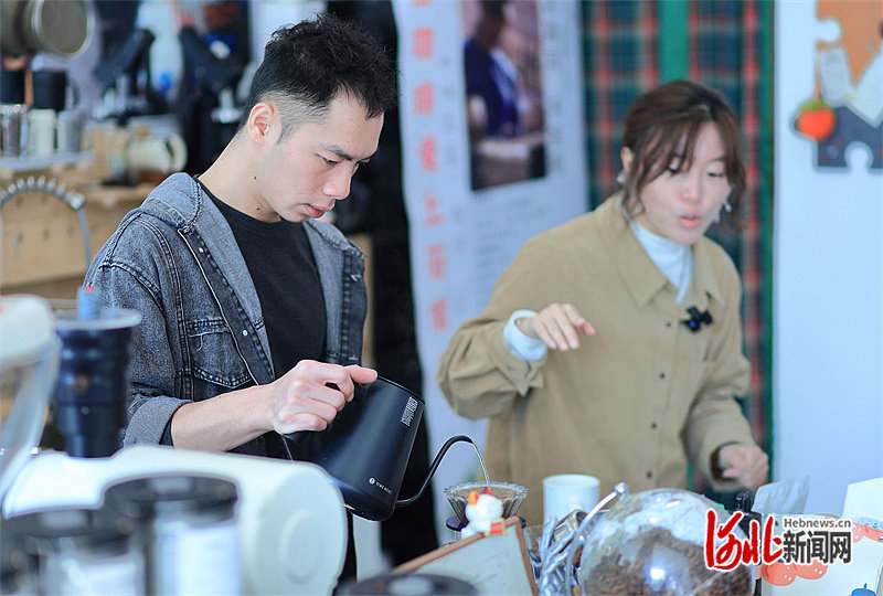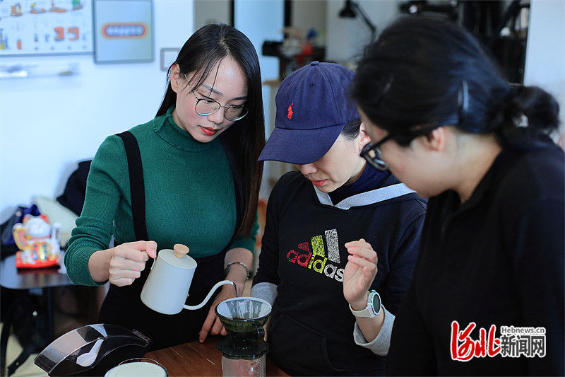 10月26日,在石家庄Serendipity's即至咖啡馆,青年夜校学员正在冲制咖啡。