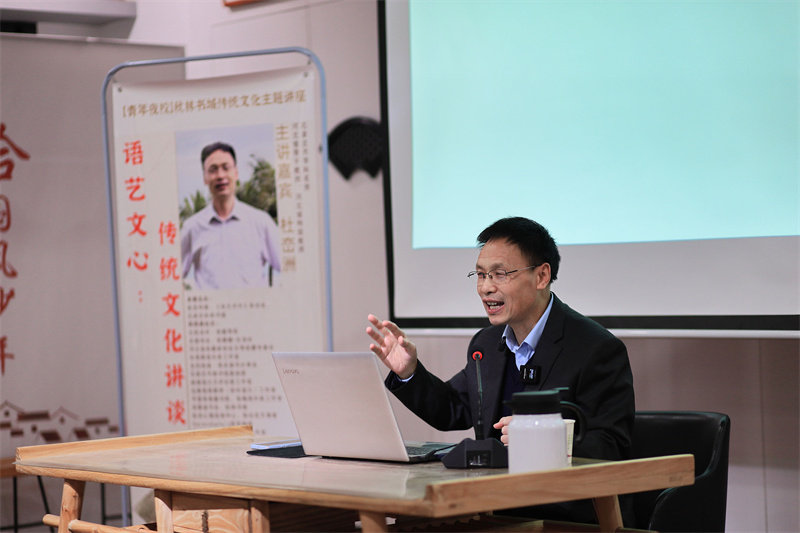此次活动由纵览传媒、《杂文月刊》杂志社与秋林书城携手主办。活动开场,河北省特级教师杜峦洲接连哼唱起《百鸟朝凤》《刘大哥讲话理太偏》《紫竹调》三首经典曲目,而后他又将话题延伸至《新贵妃醉酒》《华阴老腔》等广受听众好评的流行音乐作品,凸显出传统戏曲对地方语言和歌曲创作的深刻影响,令在场学员耳目一新。