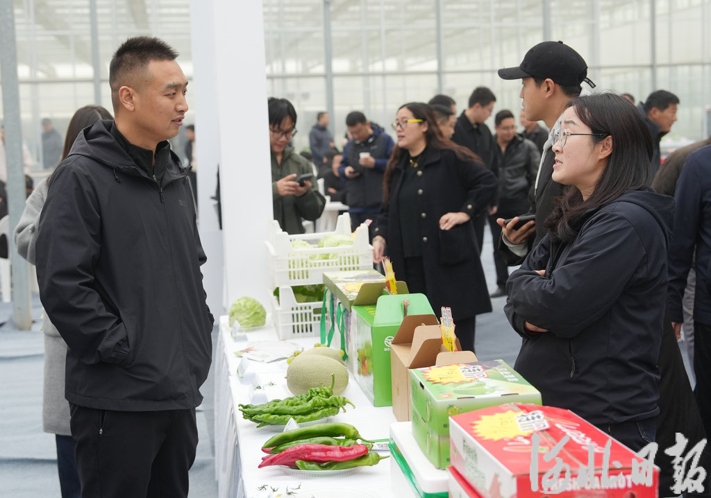 10月28日上午,2025年第七届邢台国际十字花科蔬菜产业大会现场,客户在农产品展示区交流。宋杰 陈惠浩摄