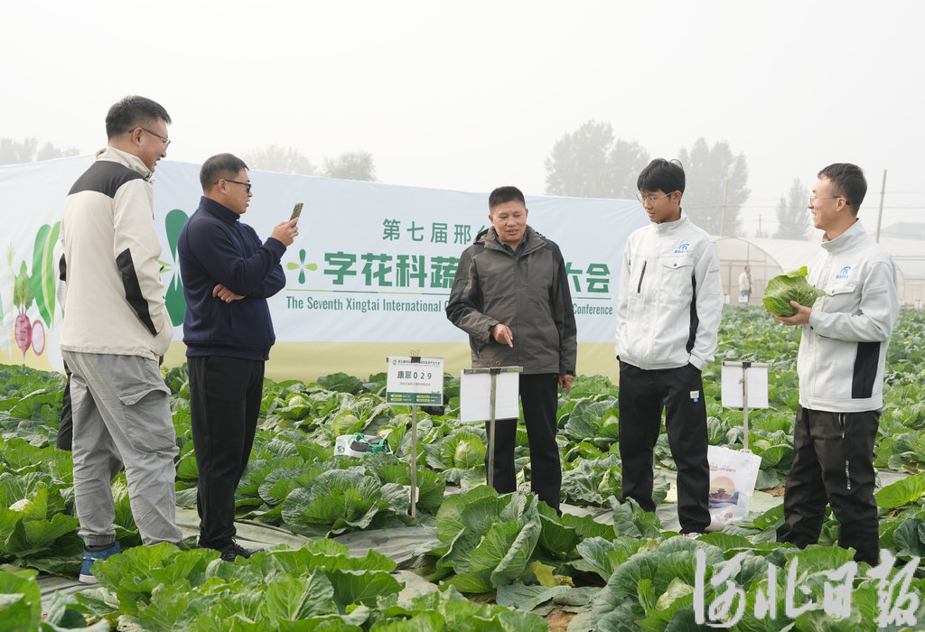 10月28日上午,2025年第七届邢台国际十字花科蔬菜产业大会现场,客商参观展示田。宋杰、陈惠浩摄