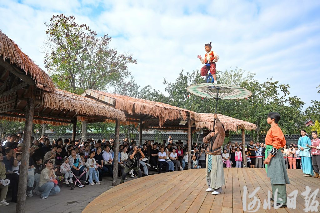 10月2日,吴桥杂技大世界景区举行“九月庙会”活动,杂技绝活、非遗展演轮番上演。河北日报记者 张昊摄