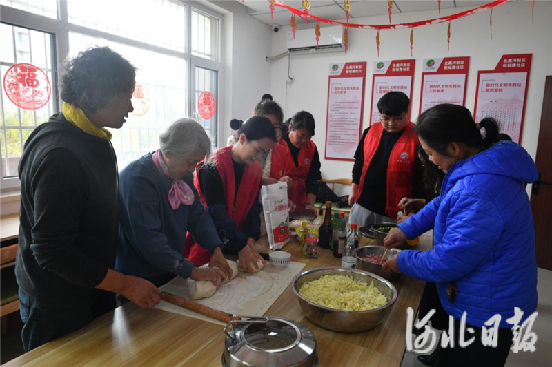 在新裕路社区新时代文明实践站,志愿者们与老人欢聚一堂,一起包饺子、话家常,共同品尝美味,感受节日的温馨与社区的温暖。志愿者们还将包好的饺子送到不便出门的老人家中,让他们也能品尝到热乎乎的饺子,感受到社区的牵挂。