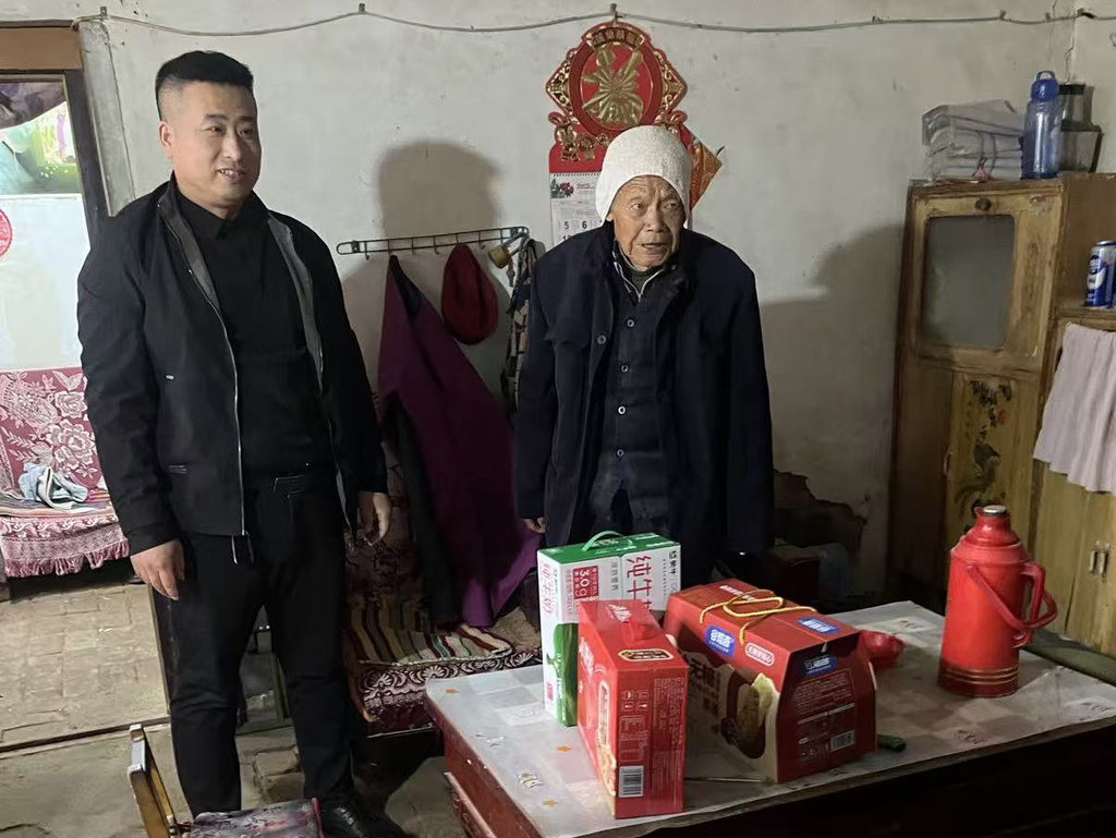 老人今年已100岁高龄精神矍铄,谈起过往岁月,眼神中满是对生活的热爱。他们为老人递上精心准备的慰问品,与老人促膝长谈,听他讲述过去的故事。