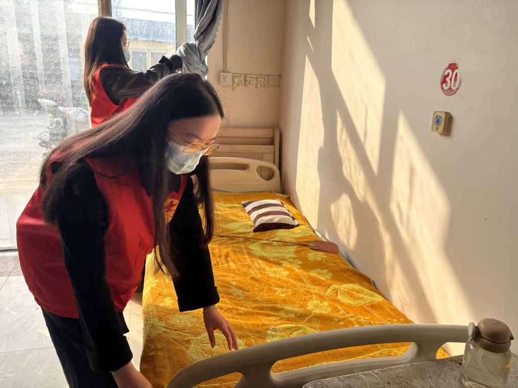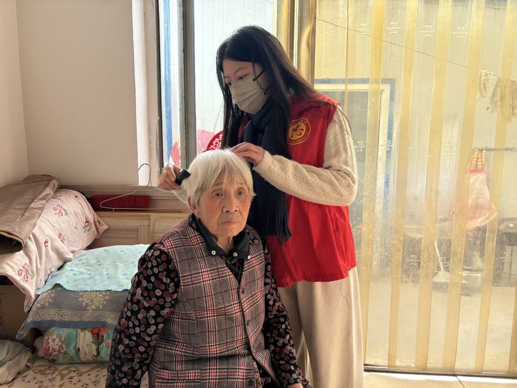 在该乡养老院,乡卫生院的医护人员们耐心细致地为每一位老人提供免费的血压测量、心肺听诊等健康检查,并针对老年人常见的高血压、糖尿病等慢性疾病提供了专业的用药指导和防治建议。“您血压有点偏高,平时饮食可得清淡些,注意休息。”医护人员一句句暖心叮嘱,让老人们倍感安心。与此同时,身穿红色马甲的党员志愿者们忙碌的身影穿梭于房间内外。他们不仅手脚麻利地帮助老人清扫房间、整理床铺,更俯下身来,细致地为长者梳顺银发、修剪指甲。这些看似平常的举动,却蕴含着无限温情。一位年过八旬的老人拉着党员志愿者的手说道:“这些孩子真好,比我自家儿女想得还周到,心里头暖洋洋的!”