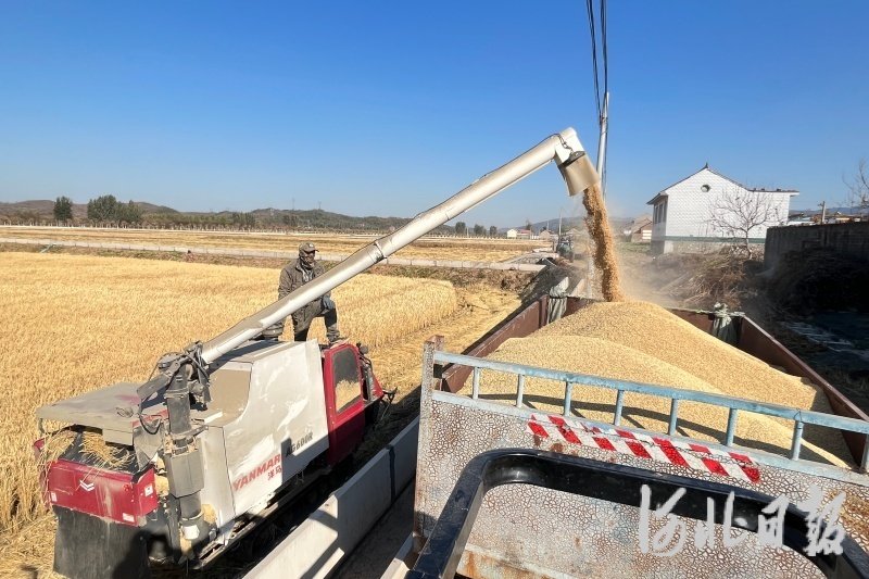 图为河北省迁西县新庄子镇的水稻迎来丰收。