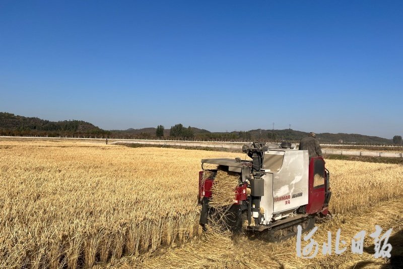 河北日报客户端讯(王喜增、刘超)田间稻谷黄,丰收正当时。近日,河北省迁西县新庄子镇的水稻迎来成熟收获期,连片水稻褪去青衫换“金袍”,金黄稻浪随风翻滚。联合收割机在田间往来穿梭,切割、脱粒等工序一气呵成,饱满的稻谷源源不断收入粮仓,尽显秋日农忙好光景。
