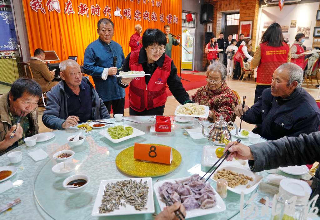 河北日报客户端讯(记者张辉)10月28日上午,秦皇岛市山海关区北营子村新时代文明实践站里,志愿者们忙着包饺子、做饽椤叶饼。旁边的礼堂里,几十位老人和志愿者们围坐在一起看演出,欢度重阳节。当天,“我们的节日·重阳”文明实践系列活动举行,以丰富多彩的文化活动和暖心服务,弘扬中华民族尊老敬老的传统美德,营造全社会关爱老人的浓厚氛围。