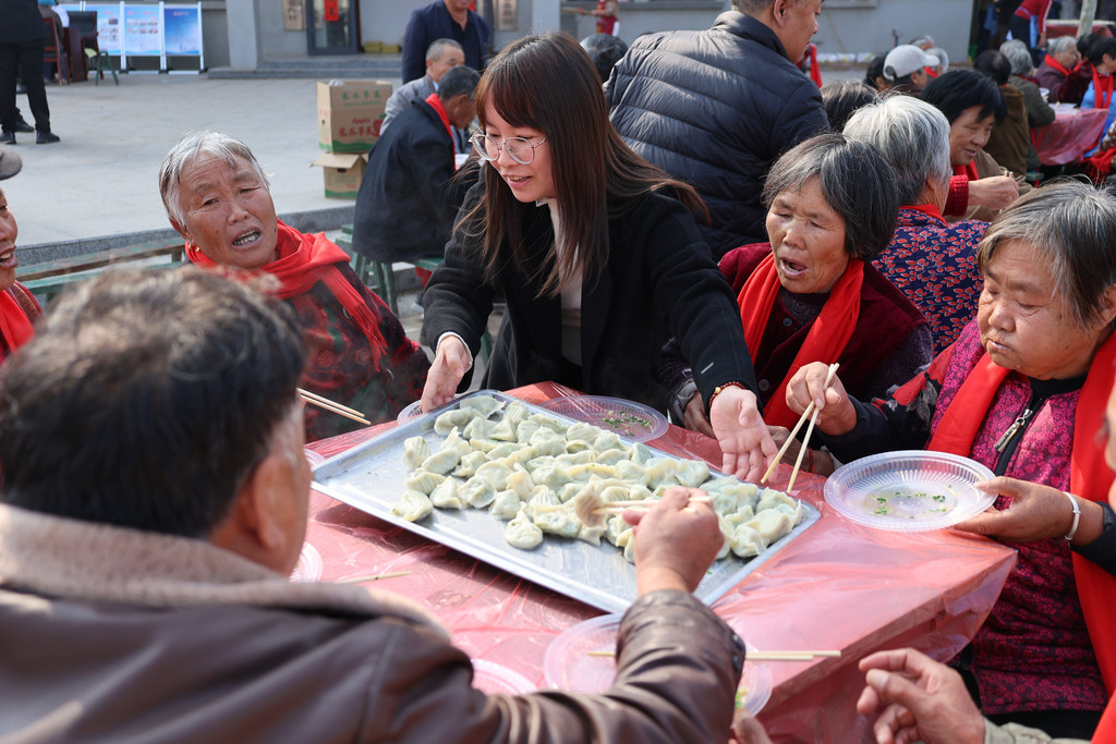 10月29日,曲周白寨科技小院学生与村镇干部和马布幸福院老人一起过重阳节。